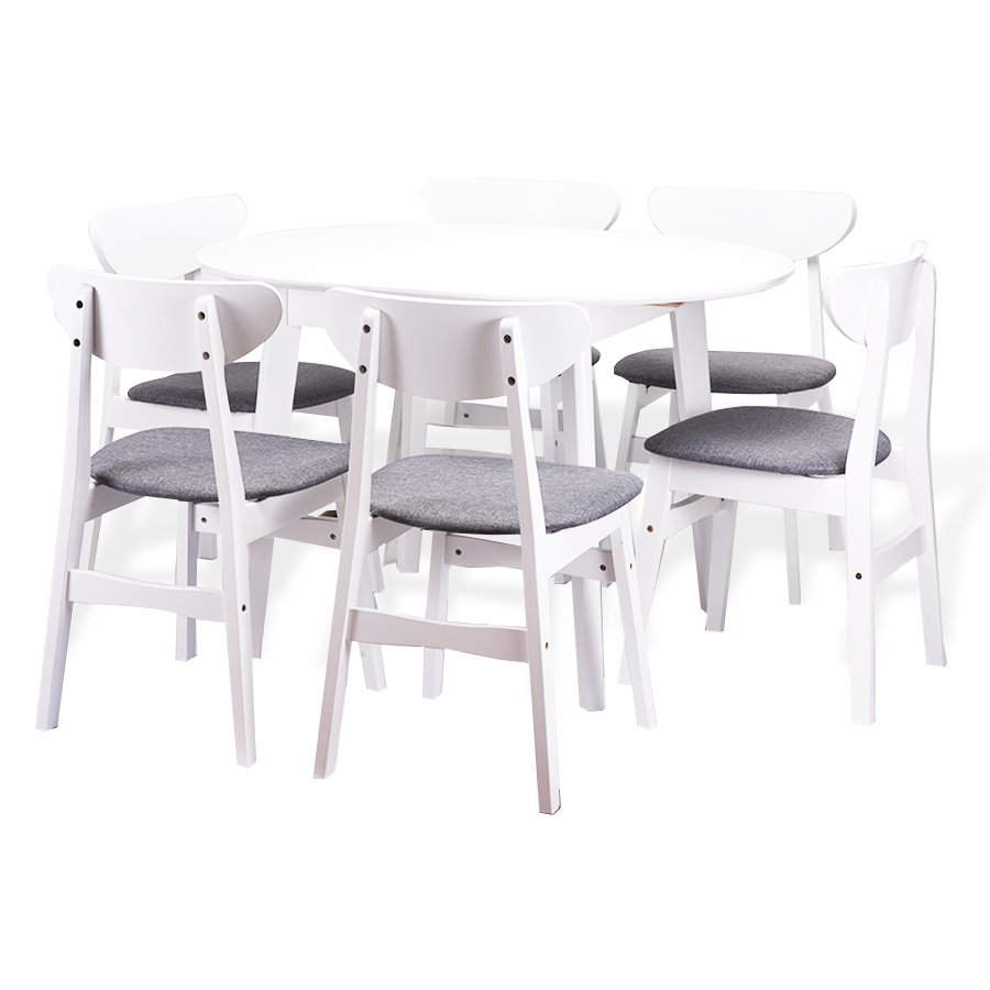 Комплект Стол Эллис раскладной белый Ø 90см + 25см, стулья Юмико белые 6 шт.