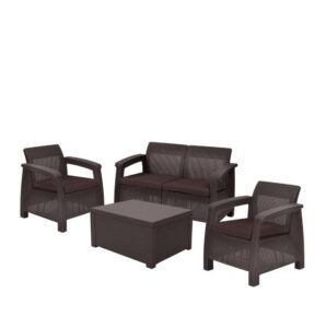 - Материал комплекта — искусственный ротанг (ручного плетения)
