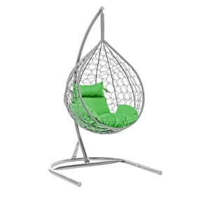 Подвесное кресло кокон двойка серая, бежевая подушка. (ЗЗ)