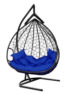 Подвесное кресло кокон двойка белая, синяя подушка. (ЗЗ)