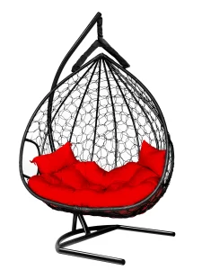 Подвесное кресло кокон двойка серая, красная подушка. (ЗЗ)