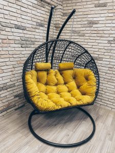 Подвесное кресло кокон двойка серая, желтая подушка. (ОО)