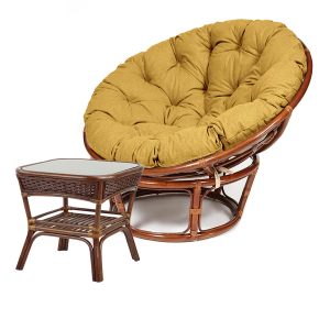 Кресло «Папасан» — представляет собой роскошную деталь интерьера, которая так и манит присесть и отдохнуть в ней, а маленький столик — прекрасное и функциональное дополнение к нему.