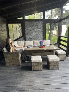 Комплект мебели демонстрирует сочетание элегантности и комфорта. Его дизайн подчёркивает богатые тона дерева (массив гевеи). Идеально подходит для различных интерьеров, в нем гармонично сочетается стиль, долговечность и комфорт.