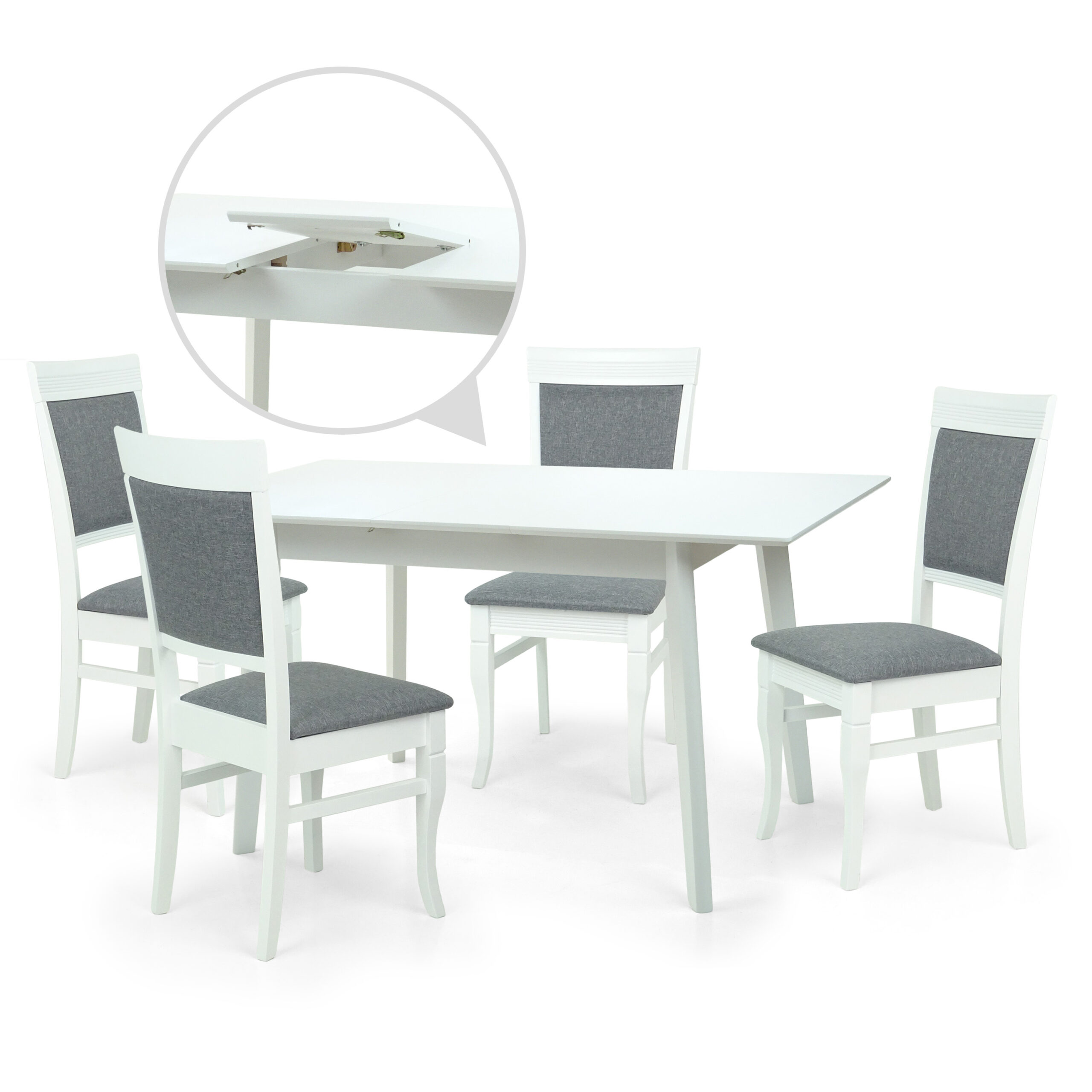 Стол Диамант раскладной/круглый белый, стулья Диамант белые 4 шт.