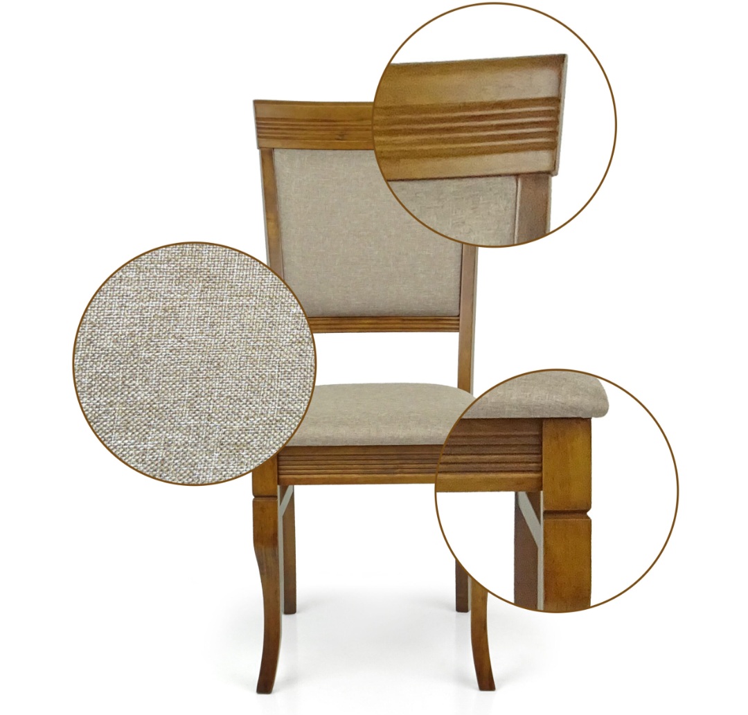 Комплект мебели демонстрирует сочетание элегантности и комфорта. Его дизайн подчёркивает богатые тона дерева (массив гевеи). Идеально подходит для различных интерьеров, в нем гармонично сочетается стиль, долговечность и комфорт.