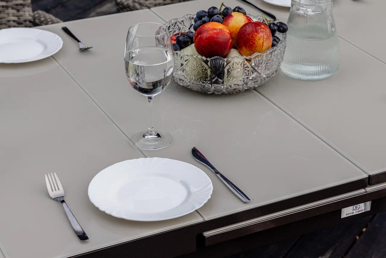 Алюминиевая конструкция столов и кресел Ferdy и Willy является прочной и долговечной, что делает этот набор мебели отличным выбором для использования на открытом воздухе. Кроме того, алюминиевые элементы легко чистятся и не требуют особого ухода.