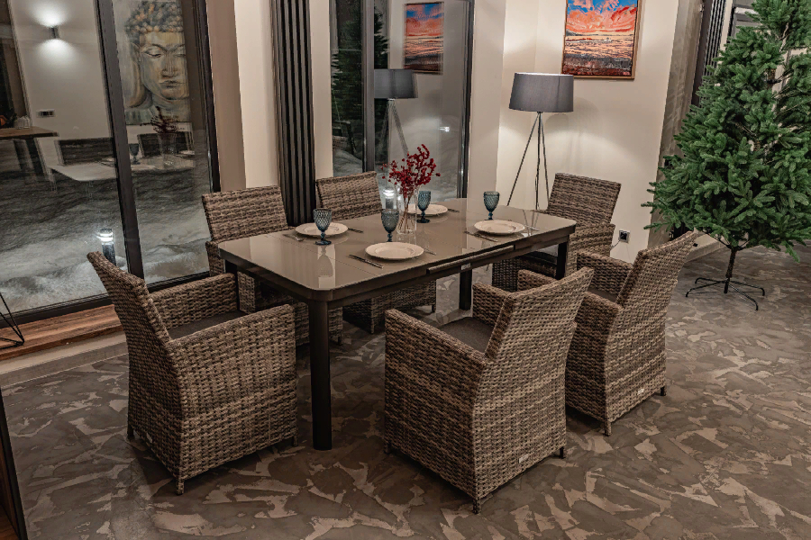 Новое сочетание садовой мебели, состоящее из алюминиевых кресел Ferdi и алюминиевого раздвижного стола Willy, рассчитано на 6 персон и станет отличным выбором для тех, кто ценит комфорт и функциональность.